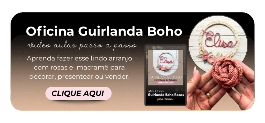 É TRICOTIN. Eu crio peças em tricotin sob encomenda e também ensino essa técnica acessível e encantadora, que transforma fios em peças decorativas cheias de significado e em uma real oportunidade de renda, mesmo para quem nunca teve contato com o artesanato.